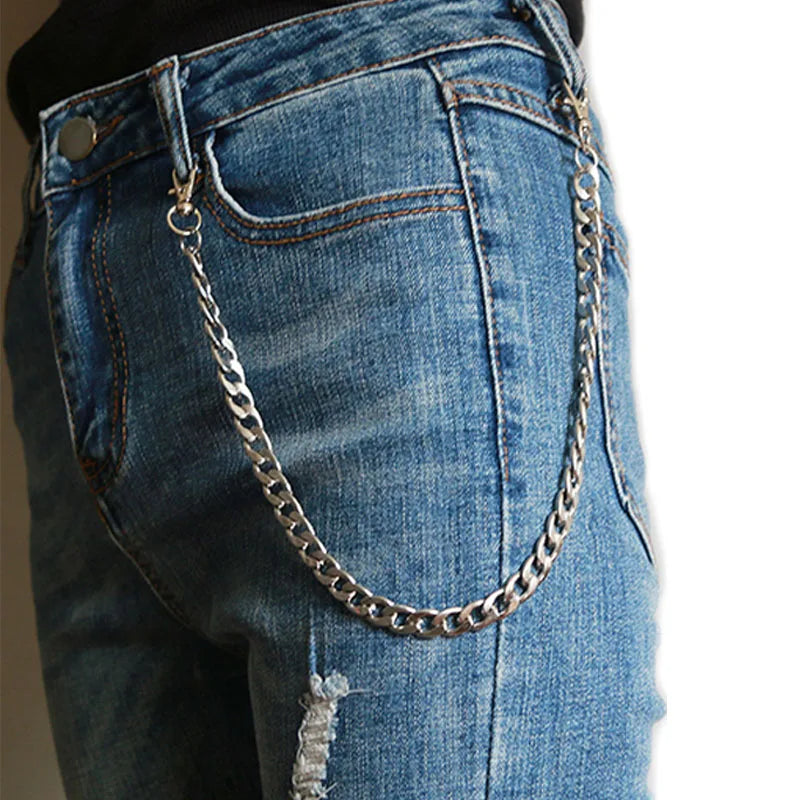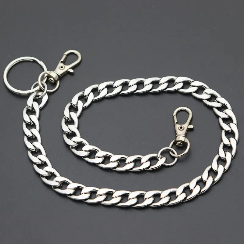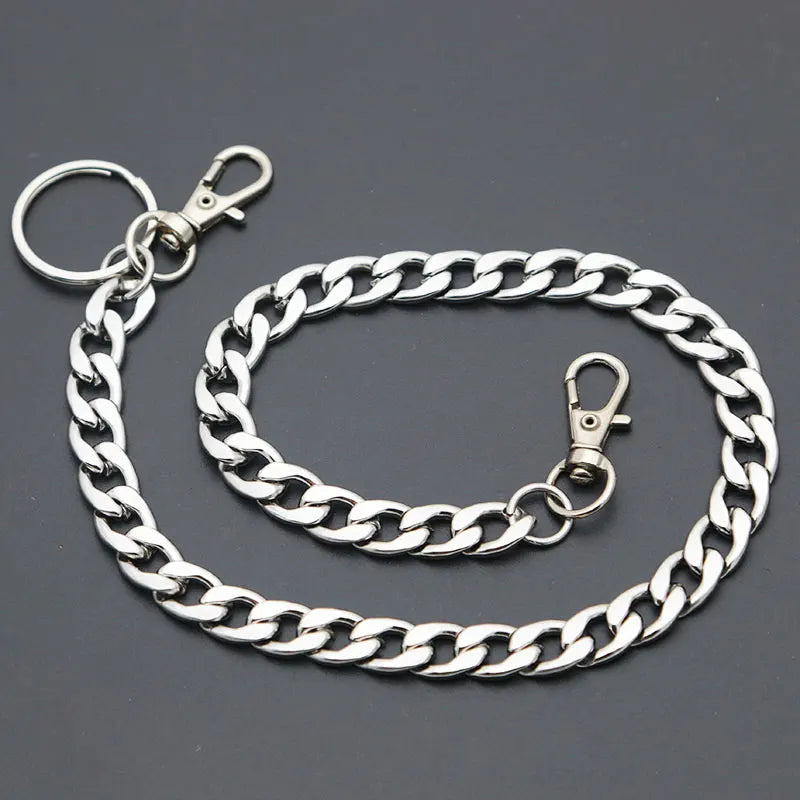 Long Metal Wallet Chain Leash Pant Jean Keychain Ring Clip Men's Hip Hop Stainless Steel Jewelry